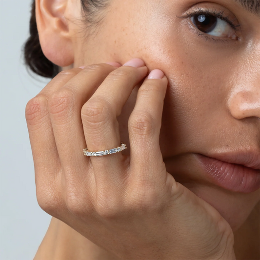 0.14 TCW Round & Baguette Shaped Half Eternity Lab Grown Diamond Wedding Band